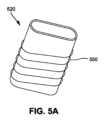 図5A~図5Bは、誘導コイルおよび鉄材料570を有する加熱素子550の他の実施形態を含む気化器カートリッジ520の他の実施形態を示す。例えば、誘導コイルは、原料物質のシートまわりに直接のように、原料物質の周りに巻き付けることができる。さらに、鉄材料570は、原料物質と混合されてよく、誘導コイルを通過する電流によって生成された電場および/または磁場と鉄材料との相互作用の結果として加熱されてもよい。原料物質と混合された鉄材料は、原料物質に沿ってかつ/または原料物質内でより均一な熱分布を可能にさせ、それにより、原料物質に沿った温度勾配を低減することができる。これは、誘導コイルによって生成された場の相互作用の下で原料物質を所望の温度範囲内の温度に加熱することを可能にさせ、それによって、原料物質から気化可能材料を効果的に気化させることができる。5A-5B show another embodiment of a