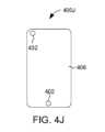 図4A-4Kは、いくつかの実施形態に係る、例示的な電子システム400A-400Kを示す。電子システム400A-400Kはそれぞれ、カメラアセンブリ432と、カメラ402及び/又はカメラ404と、ディスプレイ406と、を備える。カメラアセンブリ432は、図2及び図3A-3Gのカメラアセンブリ200、及び/又は、カメラアセンブリ300A-300Gの一実施形態であり得る。カメラ402及びカメラ404はそれぞれ、図1のカメラ102及び/又はカメラ104の一実施形態であり得る。更に、カメラ402及び404はそれぞれ、ディスプレイ406の下に配置され、深度感知のために画像を撮影するように構成される場合がある。Figures 4A-4K show exemplary