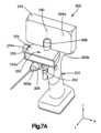 概して図2A~図2D、図7A~図7B、及び図13を参照すると、医療用撮像システム102は、外科用器具203に装着された計算装置204を含み得る外科用器具アセンブリ202を含み得る。外科用器具203は、解剖学的構造体124などの解剖学的構造に作用するように構成され得る。外科用器具203は本体205を画定することができ、計算装置204は、所望により本体205の任意の位置に取り付けられてもよい。一例では、図2A~図2Dを参照すると、計算装置204は、ひいてはディスプレイ212は、マウント228によって支持され得る。マウント228は支持表面230を含み得るが、この支持表面は、計算装置204を、ひいてはディスプレイ212を支持するものである。マウント228は、外科用器具203の支持表面230及び本体205に取り付けられたアーム232を更に含むことができ、それにより、ディスプレイ212は、外科用器具203の本体205に対して固定位置にある。アーム232又は支持表面230は、ディスプレイ212の視角を調整するために回転するように構成され得る。マウント228は、ディスプレイが外科用器具203の操作に干渉しないように配置され得る。計算装置204は、所望により、外科用器具205に代替的に取り付けられ得ることが理解されよう。2A-2D, 7A-7B, and 13, the