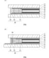 第3シール部23は、第2シール部22に接して、第2シール部22の外側を囲むように設けられている。第3シール部23は、図2(B)に示すように、その一部分において導電材24を有して当該導電材24が第1導電膜13及び第2導電膜14の各々と接するように配置され、図2(A)に示すように、他の大部分において第1無機絶縁膜13及び第2無機絶縁膜14の各々と接するように配置されている。導電材24は、例えば金メッキの施された球状体である。また、第3シール部23は、図2(A)に示すように、大部分において、第1導電膜13の端部、第1無機絶縁膜15の端部、第2導電膜14の端部及び第2無機絶縁膜16の端部を覆うように配置されている。つまり、図1に示す環状のシール部20の大部分において、図2(A)に示すように、第3シール部23は、第1無機絶縁膜15及び第2無機絶縁膜16の間を端部まで埋めるように形成されている。第3シール部23は、接着性の高い材料で構成するのが好ましく、例えば熱硬化性エポキシ樹脂などの材料を用いることができ、第1シール部21と同じ材料から構成することもできる。The