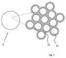 ファイバの材料と比較して被覆材の屈折率が低いので、全反射が発生し、これによって個々のライトガイドが構成される。The coating material has a lower refractive index compared to the fiber material, resulting in total internal reflection, which creates individual light guides.