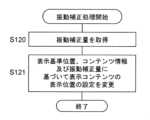 そこで、本発明者らは、上述した課題を解決するべく、振動補正処理と画像補正処理との処理の順番を切り替えることを見出した。例えば、画像補正処理の処理時間が長い場合、画像補正処理を実施した後に振動補正処理を実施するように処理の順番を切り替えることによって、振動補正処理による表示コンテンツの表示位置の変更完了から表示するまでの遅延時間を短くすることができる。これにより、振動補正誤差を小さくし、表示コンテンツの表示位置の補正精度の低下を抑制することができる。一方、画像補正処理の処理時間が短い場合、振動補正処理を実施した後に画像補正処理を実施する方が、振動補正処理による補正精度の低下を小さくしつつ、画像補正処理の補正精度を向上させることができる。Therefore, the present inventors have discovered that in order to solve the above-mentioned problems, the order of the vibration correction process and the image correction process can be switched. For example, when the processing time of the image correction process is long, the delay time from the completion of the change in the display position of the display content due to the vibration correction process to the display can be shortened by switching the processing order so that the vibration correction process is performed after the image correction process. This makes it possible to reduce the vibration correction error and suppress a decrease in the correction accuracy of the display position of the display content. On the other hand, when the processing time of the image correction process is short, performing the image correction process after the vibration correction process can improve the correction accuracy of the image correction process while reducing the decrease in correction accuracy due to the vibration correction process.