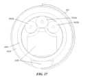 図13~図18は、複数の補助デバイス1022a、1022b、1022c(集合的に、「補助デバイス1022」)が少なくとも部分的に遠位管フレーム1005の内部ルーメン1008内に位置合わせされ、かつ拡張された膨張性エレメント1020によって定位置に固定される類の使用例を示す。図示の例は、遠位管フレーム1005を貫通して延びる補助デバイス1022を示しているが、遠位管フレームに対する順行性および/または逆行性補助デバイス1022の長さおよびポジションは、これらのデバイスをルーメン1008内に固定するに足る重なりが補助デバイス1022と膨張性エレメント1020との間に存在する限り、変わってもよい。膨張性エレメント1020が遠位管フレーム1005の外部へ、および外部ガイドカテーテルGCとガイドカテーテル延長部1000との間の空間内へと拡張する実施形態において、膨張性エレメント1020の拡張は、ルーメン1008内での補助デバイス1022の相対的位置合わせ、ならびにガイドカテーテルGC内でのガイドカテーテル延長部1000の相対的位置合わせを確実にすることの双方を保証する。13-18 show an example of such a use in which multiple