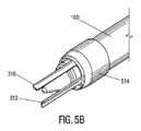 さらに図5A及び5Bを参照すると、いくつかの実施形態において、遷移要素514は、2つの切断部310,312が遷移要素514から延在する(図5Bに示されるように)ことができるように設計された切欠き512を含む。切欠き512は、それがカニューレ100内から遷移要素514を通って2つの切断部310,312の通過ができたように配置される。いくつかの実施形態において、切欠き512は、遷移要素514の少なくとも一部を備えて円周方向に延在する曲がった切欠きである。例えば、切欠き512は、カニューレ100の遠位端及び/または先端120の円弧、角度、形状などを鏡に映すような形状にされる。いくつかの実施形態において、切欠き512の円周方向の長さは、切開先端120に対する切断部の回転の範囲を制御する。いくつかの実施形態において、切断部の回転の許容できる円弧は、切欠き512の開口に依存して、完全な回転より小さい。切断部は、切欠き512内に配置され、片面機能を有する、すなわち形状、導電端部312及び平坦な導電端部310(すなわちアンビル)は、それぞれの切断部の内側端部に置かれ、外側端部に置かれない。この構成により、切断要素310,312の1または両方が切欠き512内で回転し、所望の効果(例えば分離、切開など)を達成できる。5A and 5B, in some embodiments, the