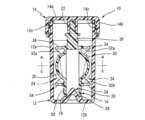 また、レンズホルダ16には、蓋部材を設ける必要がないところから、そのような蓋部材の開閉のための回動機構や、蓋部材の嵌合部も設ける必要がなく、これにより、レンズホルダ16自体の構造も簡略化することが出来、以て、シンプルな構造のレンズホルダとすることが可能となると共に、容器本体12の筒壁部12aの内壁面(内周面)が、円筒形状となっているところから、キャップ14の螺合時におけるレンズホルダ16の方向性(回転位置)を何等顧慮する必要もないという特徴も発揮され得るのである。In addition, since there is no need to provide a lid member for the