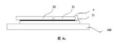 図4aを参照すると、保持プレート400は、金属、ガラス、またはシリコンなどの材料を使用することによって作製されてもよい。保持プレート400は、フィルム接着材料の層で覆われ、この材料の層は、第1のチップ31を固定するために使用される。フィルム接着材料は、感光性材料または感熱性材料であってもよい。紫外線によって照射されるか、または特定の加熱条件下に置かれた後、材料の接着力は大幅に低減されて、後の界面分離操作が容易になる。第1のチップ31が保持プレート400に固定されるとき、第1のチップ31の接続面は保持プレート400から離れた方に面する。第1のチップ31の厚さ範囲は、25μm~400μmであってもよい。例えば、第1のチップ31の厚さは、25μm、50μm、80μm、または400μmであってもよい。  Referring to FIG. 4a, the holding