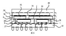 図9は、図3に示されるパッケージングモジュールに基づく別の変形構造体を示している。図9に示される構造体では、図3に示される基板層10の埋め込みチップが基板層の表面に配置されているものと理解されよう。Figure 9 shows another modified structure based on the packaging module shown in Figure 3. It will be understood that in the structure shown in Figure 9, the embedded chip of the