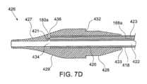 本発明の別の態様によれば、少なくとも2つの直径方向に対向する領域からフロー測定値を獲得する方法であって、(a)送達アセンブリを提供するステップであって、送達アセンブリは、半径方向に圧縮された構成と半径方向に拡張された構成との間で移動可能な人工弁、および、送達装置を含み、送達装置は、ハンドル、ハンドルから遠位に延在している送達シャフト、および、送達カテーテルを通って延在している超音波測定カテーテルを含み、送達カテーテルは、センシングヘッドを含み、センシングヘッドは、ドップラーセンサを含む、ステップと;(b)天然の心臓弁に対して人工弁を拡張させるステップと;(c)拡張された人工弁を通して遠位に超音波測定カテーテルを前進させるステップと;(d)ドップラーセンサを利用し、少なくとも2つの直径方向に対向する領域から測定信号を獲得するステップとを含む、方法が提供される。According to another aspect of the present invention, there is provided a method of acquiring flow measurements from at least two diametrically opposed regions, the method comprising: (a) providing a delivery assembly, the delivery assembly including a prosthetic valve movable between a radially compressed configuration and a radially expanded configuration, and a delivery device, the delivery device including a handle, a delivery shaft extending distally from the handle, and an ultrasound measurement catheter extending through the delivery catheter, the delivery catheter including a sensing head, the sensing head including a Doppler sensor; (b) expanding the prosthetic valve relative to the native heart valve; (c) advancing the ultrasound measurement catheter distally through the expanded prosthetic valve; and (d) utilizing the Doppler sensor to acquire measurement signals from at least two diametrically opposed regions.