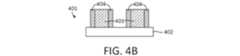 図3は、本明細書の様々な実施形態に係るスペーサ・オン・スペーサ式自己整合4重パターニングを実行するためのフローチャートを示す。図4A-4Fは、図3に記載された方法が行われている、部分的に製造された半導体デバイスを例示する。図3の動作について、図4A-4Fを参照して説明する。Figure 3 illustrates a flow chart for performing spacer-on-spacer self-aligned quadruple patterning according to various embodiments herein. Figures 4A-4F illustrate a partially fabricated semiconductor device on which the method described in Figure 3 has been performed. The operation of Figure 3 will be described with reference to Figures 4A-4F.