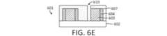 方法は動作503へと続き、図6Bに示すように、平坦化層607、中間層608、及びパターニングされたフォトレジストの層609が、基板601上に順次設けられる。多くの場合、平坦化層607は、スピンオンカーボン又はスピンオンガラスであり、これらは自己平坦化する。あるいは、平坦化層607は、化学蒸着又は他の方法により堆積されてもよい。平坦化層607の上面/部分は、典型的に平らである。平坦化層607は、マスク又はブロックマスクとも呼ばれる場合がある。様々に異なる従来材料が中間層608に使用されてもよく、中間層608は、スピンオン技術、PECVD技術などによって堆積されてもよい。フォトレジスト609は、任意の種類のフォトレジストであってよい。特定の実施形態では、フォトレジスト609は、極端紫外線(EUV)フォトレジストである。このようなEUVフォトレジストは、現在使用及び開発されている標準的な13.5nmのEUV波長を用いて露光されてもよい。しかしながら、一般に248nm又は193nmのエキシマレーザ源の使用を意味するDUV(深紫外線)、X線範囲のより低いエネルギー範囲におけるEUVを正式に含むX線、及び広いエネルギー範囲をカバーできる電子ビームを含む、他の放射線源が、場合によっては使用されてもよい。The method continues with