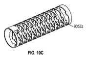 本明細書に記載の硬化デバイスは、例えば硬化デバイスの壁内に真空又は圧力が印加される時に、付加層(例えば編組層)が統合されうる内側表面となるように構成される最内層を含み得る。この層は更に、壁のシールとなり(つまり防漏性であり)、硬化デバイスの屈曲及び/又は、硬化中の硬化デバイスの圧縮の間でも径方向圧壊に抵抗するのに充分な強度を持ち得る。図7を参照すると、幾つかの実施形態において、最内層8815は、補強要素8850z又はコイルを基材8851z内に含み得る。補強要素8850zは、間に間隙を含む(螺旋コイルよりも圧壊に対する高い抵抗を示す)連続螺旋コイル又は閉リングであり得る。付加的に、内側層8801は内側膜8852z及び外側膜8853zをその片側又は両側に含み得る。幾つかの実施形態において、要素8853z,8852z,8850z/8851zの各々は0.0002”~0.015”の厚さを有し得る。The curing devices described herein may include an innermost layer configured to provide an inner surface to which additional layers (e.g., braided layers) may be integrated, for example, when a vacuum or pressure is applied within the walls of the curing device. This layer may further provide a seal (i.e., leak-proof) to the walls and may be strong enough to resist radial collapse during flexing of the curing device and/or compression of the curing device during curing. With reference to FIG. 7, in some embodiments, the