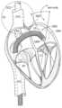 上記及び他の実施形態は、以下の特徴のうち一つ以上を含み得る。所望の最終箇所は大動脈弁であり得る。心臓デバイスは、経カテーテル大動脈弁置換であり得る。所望の最終箇所は僧帽弁であり得る。心臓デバイスは僧帽弁置換又は僧帽弁修復要素であり得る。These and other embodiments may include one or more of the following features: The desired end location may be the aortic valve. The cardiac device may be a transcatheter aortic valve replacement. The desired end location may be the mitral valve. The cardiac device may be a mitral valve replacement or mitral valve repair element.