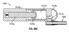 本明細書に記載のデバイスのいずれも、以下のうち一つ以上を含み得る。硬化デバイスは更に、編組層に近接する滑動層を含み得る。滑動層は編組層より低い摩擦係数を有し得る。硬化構成の硬化デバイスは、可撓構成の硬化デバイスより少なくとも2倍は剛性であり得る。硬化構成の硬化デバイスは、可撓構成の硬化デバイスより少なくとも5倍は剛性であり得る。編組層は、長形可撓性チューブが直線状である時に長形可撓性チューブの長手軸線に対して5~40度の編組角度で共に編組される複数の撚糸を有し得る。編組角度は10と35度の間であり得る。長形可撓性チューブは、中に延在する補強要素を含み得る。補強要素はコイル又は複数の輪状要素を含み得る。編組層は、4~60のインチ当たりピック数で共に編組される複数の撚糸を含み得る。編組層は、共に編組される複数の撚糸を含み得る。撚糸はポリエチレンテレフタレート又はステンレス鋼を含み得る。編組層は、長形可撓性チューブに対して30~70%の被覆率を提供し得る。編組層は、共に編組される96本の撚糸又はそれ以上の撚糸を含み得る。入口は圧力源に装着されるように構成され得る。硬化デバイスは更に貯気層を中に含み得る。貯気層は、圧力が入口から供給される時に編組層に押圧されるように構成され得る。外側層は更に、複数の補強要素を中に含み得る。入口は真空源に装着されるように構成され得る。外側層は薄い可撓性シースであり得る。硬化デバイスは更に、編組層と外側層との間に径方向間隙を含み得る。間隙は0.00002”~0.04”の厚さを有し得る。硬化デバイスは更に操向性遠位端部を含み得る。硬化デバイスは更に、長形可撓性チューブと外側層との間に密閉チャネルを含み得る。密閉チャネルは、ワーキングチャネル、ケーブルガイド、又は膨張内腔を含み得る。Any of the devices described herein may include one or more of the following: The stiffened device may further include a sliding layer adjacent to the braided layer. The sliding layer may have a lower coefficient of friction than the braided layer. The stiffened device in the stiffened configuration may be at least two times stiffer than the stiffened device in the flexible configuration. The stiffened device in the stiffened configuration may be at least five times stiffer than the stiffened device in the flexible configuration. The braided layer may have a plurality of strands braided together at a braid angle of 5 to 40 degrees relative to a longitudinal axis of the elongated flexible tube when the elongated flexible tube is straight. The braid angle may be between 10 and 35 degrees. The elongated flexible tube may include a reinforcing element extending therethrough. The reinforcing element may include a coil or a plurality of hoop elements. The braided layer may include a plurality of strands braided together at a picks per inch of 4 to 60. The braided layer may include a plurality of strands braided together. The strands may include polyethylene terephthalate or stainless steel. The braided layer may provide 30-70% coverage for the elongated flexible tube. The braided layer may include 96 or more strands braided together. The inlet may be configured to be attached to a pressure source. The stiffening device may further include a reservoir layer therein. The reservoir layer may be configured to be pressed against the braided layer when pressure is provided from the inlet. The outer layer may further include a plurality of reinforcing elements therein. The inlet may be configured to be attached to a vacuum source. The outer layer may be a thin flexible sheath. The stiffening device may further include a radial gap between the braided layer and the outer layer. The gap may have a thickness of 0.00002" to 0.04". The stiffening device may further include a steerable distal end. The stiffening device may further include a sealing channel between the elongated flexible tube and the outer layer. The sealing channel may include a working channel, a cable guide, or an inflation lumen.