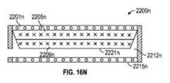 上記及び他の実施形態は、以下の特徴のうち一つ以上を含み得る。圧力は1atmより大きい。第1硬化デバイスは真空により硬化されるように構成され、第2硬化デバイスは1atmより大きい圧力により硬化されるように構成され得る。第1及び第2硬化デバイスの各々は複数の層を含み得る。真空又は圧力は複数の層の間に供給されるように構成される。複数の層の少なくとも一つは編組層であり得る。These and other embodiments may include one or more of the following features: The pressure is greater than 1 atm. The first stiffening device may be configured to be cured by a vacuum and the second stiffening device may be configured to be cured by a pressure greater than 1 atm. Each of the first and second stiffening devices may include multiple layers. The vacuum or pressure may be configured to be applied between the multiple layers. At least one of the multiple layers may be a braided layer.