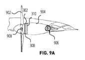 図9A、図9Bおよび図9Cは、いくつかの例による航空機推進システム300と、プロペラ902およびナセル904などの関連する複数の構成要素との傾動を示す。航空機は、図示されるようなeVTOL航空機(例えば、マルチモーダル(multi-modal)航空機)であることが好ましいが、追加的に又は代替的には、任意の適切な航空機を含むことができる。航空機100は、好ましくは、前進配置(図9Aおよび図10A)と、ホバリングまたは垂直飛行配置(図9Cおよび図10C)との間で動作可能な複数の航空機推進システムを有するティルトローター(tiltrotor)航空機である。しかしながら、航空機は、代替的には、1つ以上のロータアセンブリまたは推進システムを有する固定翼航空機、1つ以上のロータアセンブリを有するヘリコプター(例えば、少なくとも1つのロータアセンブリまたは航空機推進システムが、水平推力を提供するように実質的に軸線方向に配向される)、ティルトウィング(tiltwing)航空機、無翼航空機(例えば、ヘリコプター、マルチコプター(multi-copter)、クアッドコプター(quadcopter))、および/または複数のプロペラまたは複数のロータによって推進される任意の他の適切な回転翼機または車両であり得る。9A, 9B, and 9C illustrate the tilting of an aircraft propulsion system 300 and associated components such as a