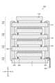 次いで、第1比較例を説明する。図12は、第1比較例に係るパネルユニットの調光パネルを積層する状態を示す模式図である。図13は、第1比較例に係るパネルユニットに1つの導電部材を設けた状態を示す模式図である。図14は、第1比較例に係る調光装置を示す模式図である。Next, a first comparative example will be described. Fig. 12 is a schematic diagram showing the state in which the dimming panels of the panel unit according to the first comparative example are stacked. Fig. 13 is a schematic diagram showing the state in which one conductive member is provided on the panel unit according to the first comparative example. Fig. 14 is a schematic diagram showing the dimming device according to the first comparative example.