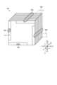 Fig. 1 is a perspective view showing a light control device according to a first embodiment. Fig. 2 is a cross-sectional view of the light control device shown in Fig. 1. Fig. 3 is a schematic view showing a wafer provided with a plurality of cells. Fig. 4 is a cross-sectional view of a plurality of stacked cells shown in Fig. 3.