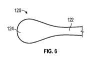 図8に示されるように、突出フィーチャ120のうちの1つ又は複数は、突出フィーチャ120のヘッド124を通って延在する開口部126を提供するループを備えたステム122及びヘッド124を含み得る。ループは、そこを通過できるようにしながら、広い領域を覆い得る。As shown in FIG. 8, one or more of the raised features 120 may include a