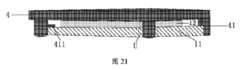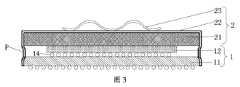 図3は、本願の一実施形態による、要素1の位置における放熱アセンブリの取り付けを示す概略図である。図2及び図3を参照すると、要素1によって生成された熱を伝導するために、ヒートスプレッダ21の一方の面の表面が要素1に接触している。ヒートスプレッダ21の均衡の取れた熱伝導効果を達成するために、ヒートスプレッダ21は、均一な厚さを有するものとして構成されてよい。例えば、ヒートスプレッダ21の厚さは、およそ2mmに設定されてよい。ヒートスプレッダ21の特定の厚さは、要素1の圧力抵抗性及び信頼性に基づき設定されてよい。ヒートスプレッダ21の厚さは、本願において限定されない。弾性構造部23は、ヒートスプレッダ21の、要素1から離れる方に向いた面に位置している。弾性構造部23が変形した後、要素1、ヒートスプレッダ21、及びフレームボディ22は、厚さ方向の定位置に固定されることが可能であり、それにより要素1によって生成された熱は、ヒートスプレッダ21に伝導されることが可能である。加えて、フレームボディ22は、ヒートスプレッダ21の位置を制限し、それによりヒートスプレッダ21が水平方向に移動するのを防止することができる。したがって、放熱アセンブリ2が要素1の位置に取り付けられた後、ヒートスプレッダ21は、水平方向又は厚さ方向に移動しない。これにより、放熱境界面が安定し、それにより要素1によって生成された熱が円滑に伝導されることが確保される。加えて、弾性構造部23は、フレームボディ22のうちの、ヒートスプレッダ21に近い面の縁部に位置していてよい。したがって、ヒートスプレッダ21に対する弾性構造部23の被覆面積は小さく、それによりヒートスプレッダ21の熱伝導性能は影響を受けない。  3 is a schematic diagram showing the installation of a heat dissipation assembly at the position of the