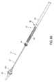 近位引っ張りワイヤ接続領域を遠位方向にたどると、遠位のスロット付きのハイポチューブ区域235がある。この区域は、近位のスロット付きのハイポチューブ区域233と同様であるが、同等の長さで切り取られた、著しく多いスロットを有する。よって、遠位方向にスロットが付けられた区域235は、近位方向にスロットが付けられたハイポチューブ区域233よりも容易な屈曲を提供する。近位のスロット付きハイポチューブ区域233および遠位のスロット付きの区域235は、レールシャフトの曲げ部分を含んでもよい。いくつかの実施形態において、近位のスロット付きのハイポチューブ区域233は、1/2インチの半径でおおよそ90度の屈曲を受けるように構成することができ、その一方で、遠位のスロット付きの区域235は、1/2インチの範囲内でおおよそ180度で屈曲することができる。さらに、図9に示されるように、遠位方向にスロットが付けられたハイポチューブ区域235は、近位方向にスロットが付けられたハイポチューブ区域233の背骨状の部分からオフセットされている。したがって、2つの区域は、異なる屈曲パターンを達成し、レール組立体20の三次元の操縦を可能にすることになる。いくつかの実施形態において、背骨状の部分は、オフセット30度、45度または90度であり得るが、特定のオフセットは限定ではない。いくつかの実施形態において、近位方向にスロットが付けられたハイポチューブ区域233は、圧縮コイルを含むことができる。これは、近位方向にスロットが付けられたハイポチューブ区域233が、遠位方向にスロットが付けられた区域235の特有の屈曲のために剛性を保持するのを可能にする。Following the proximal pull wire connection region distally is the distal slotted