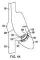 図2A~図2Cに示され、および図4~図8にさらに示されるように、最も外側の組立体で始まって、送達システムは、インプラント保持領域16を取り囲み、インプラントが半径方向に拡張するのを阻止するために、半径方向外側のカバー、またはシースを形成する外側シース組立体22を含むことができる。具体的には、外側シース組立体22は、インプラントの遠位端の半径方向の拡張が半径方向に拡張するのを阻止することができる。半径方向内側に移動し、中間シャフト組立体21は、その遠位端が、インプラント70の近位端などのプロテーゼの一部を圧縮構成で半径方向に保持するための外側保持部材または外側保持リング42に装着された中間シャフトハイポチューブ43で構成され得る。中間シャフト組立体21は、外側シース組立体22の内腔内に配置され得る。さらに内側に移動しレール組立体20は、上記に挙げたように、および以下でさらに記載されるように操縦性のために構成され得る。レール組立体20は、中間シャフト組立体21の内腔内に配置されてよい。さらに内側に移動し、内側シャフト組立体18は、その遠位端が、プロテーゼ、例えばプロテーゼの近位端を軸方向に維持するための内側保持部材または内側保持リング40(PEEKリングなど)に装着された内側シャフトで構成され得る。内側シャフト組立体18は、レール組立体20の内腔内に配置され得る。さらに、最も半径方向内側の組立体は、ノーズコーン28に接続されたその遠位端を有するノーズコーンシャフト27を含むノーズコーン組立体31であってよい。ノーズコーン28は、先細になった先端を有することができる。ノーズコーン組立体31は好ましくは、内側シャフト組立体18の内腔内に配置されてよい。ノーズコーン組立体31は、その中を通過するためのガイドワイヤのための内腔を含むことができる。2A-2C, and further illustrated in FIGS. 4-8, beginning with the outermost assembly, the delivery system can include an