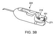 図2、図3A~図3Cは、切断のために、切断されたステントを眼内に展開するための導管を提供するために物質のパッチを保持するように構成された組織カートリッジ200の実例を示す。カートリッジ200は、近位部分207に結合され、そこから遠位に延びる遠位部分205を含むことができる。遠位部分205は、ステント105を収容して展開するために寸法構成された内側導管または管腔238を有する細長い部材またはシャフト210を含むことができる。近位部分207は、ベース224と、ベース224に移動可能に取り付けられたカバー214とを含むことができる。近位部分207は、遠位部分205が標的の組織内にステント105を展開するために眼内に挿入するように構成される一方で、眼の外に残ることを意図している。移植体105は、カートリッジ200の近位部分207から、カートリッジ200の遠位部分205内に位置する展開に進むことができる。カートリッジ200の遠位部分205は、移植体105がカートリッジ200から眼組織内に展開される眼組織に隣接して配置するように、眼の前眼房内に挿入可能である。例えば、カートリッジ200の遠位部分205は、角膜切開を通じて前眼房に眼の内側から挿入することができ、カートリッジ200の近位部分207は、眼の外に残っている(例えば、送達デバイス400に結合される)。2, 3A-3C show an example of a