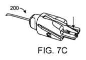 図6、図7A~図7Cは、切断のために、切断されたステントを眼内に展開するための導管を提供するための、物質のパッチを保持するように構成された組織カートリッジ200の別の実例を図示する。組織カートリッジ200は、ステント105を収容して展開するために寸法構成された内部導管または管腔238(図14Iに示される)を有するシャフト210を含む近位部分207に結合され、そこから遠位に延びる遠位部分205を含むことができる。近位部分207は、ベース224と、ベース224に移動可能に取り付けられたカバー214とを含むこともできる。遠位部分205およびシャフト210は、カートリッジ200の近位部分207に取り外し可能に取り付けられることができる。例えば、近位部分207は、切断デバイス300内に留まることができ、ノーズコーン275およびシャフト210を備える取り外し可能なノーズコーンアセンブリ274は、近位部分207から係合解除され、送達デバイス400と係合されることができる(図9A~図9Dを参照)。6, 7A-7C illustrate another example of a