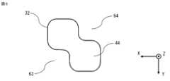 多層基板の内層に形成され、誘電体を充填した導波管を用いることで、多層基板の表面と裏面とを接続することができる。しかしながら、開示された導波管の形状により多層基板の表面と裏面とを接続する場合、伝搬させる信号の方向は、一つの特定の方向に限られている。例えば、表面に設けられ、一つの特定の方向であるX方向に延出したマイクロストリップ線路を伝搬した信号は、導波管を介して、裏面に設けられ、X方向に延出したマイクロストリップ線路のみを伝搬することになる。そのため、信号の伝搬方向を表面と裏面とで90度、つまり垂直方向に転換させたい場合、表面、又は裏面のどちらか一方の面に信号の伝搬方向を変えるための追加の給電線路が必要となる。The front and back surfaces of the multilayer board can be connected by using a waveguide filled with a dielectric material formed in an inner layer of the multilayer board. However, when the front and back surfaces of the multilayer board are connected by the disclosed shape of the waveguide, the direction of the signal to be propagated is limited to one specific direction. For example, a signal propagated through a microstrip line provided on the front surface and extending in one specific direction, the X-direction, propagates only through a microstrip line provided on the back surface and extending in the X-direction via the waveguide. Therefore, when it is desired to change the signal propagation direction between the front surface and the back surface by 90 degrees, i.e., to the vertical direction, an additional feeder line is required on either the front surface or the back surface to change the signal propagation direction.