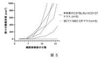 一実施態様において、癌細胞は、HT1080、A549、SC-OV-3、PC3、HT1376、NCI-H292、LnCap、MC38、MC38 #13、4T1-D02、H322、HT29、T47D、及びRKO腫瘍細胞から選択される。In one embodiment, the cancer cells are selected from HT1080, A549, SC-OV-3, PC3, HT1376, NCI-H292, LnCap, MC38,