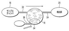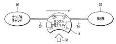 また、サンプル貯蔵チャンバ18とサンプルチャンバ16と検出部20との間には別な処理を行うサンプル貯蔵チャンバがあっても良い。例えば、RNA転写反応、一本鎖化酵素処理、蛍光色素或いは酵素等の修飾処理等が挙げられる。  In addition, there may be a sample storage chamber for performing another process among the