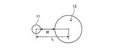 はじめに、図4に示すように、コア部11の中心軸と空孔13の中心軸とを結んだ線上における、コア部11の外周と空孔13の内壁との最短距離をW[μm]と定義する。なお、コア径をa1、空孔径をb1、コア部11と空孔13の中心間距離をLとした場合、Wは、W=L−(a1+b1)/2で表される。 First, as shown in FIG. 4, the shortest distance between the outer periphery of the