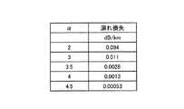 なお、α値はコア部全体の屈折率分布形状を規定するパラメータである。しかしながら、コア部とクラッド部との境界におけるコア部の屈折率分布形状が、比屈折率差がゼロの位置から比屈折率差が最大値の3/4となる位置までの形状をα型の屈折率分布形状で近似した場合に、α値が3.5以上の値となるような形状を成していれば、漏れ損失は十分に小さくなる。 The α value is a parameter that defines the refractive index distribution shape of the entire core portion. However, the refractive index distribution shape of the core part at the boundary between the core part and the clad part is an α-type shape from the position where the relative refractive index difference is zero to the position where the relative refractive index difference is 3/4 of the maximum value. When the shape is such that the α value is 3.5 or more when approximated by the refractive index distribution shape, the leakage loss is sufficiently small.