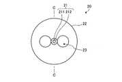 つぎに、本発明の実施の形態2に係る偏波保持光ファイバについて説明する。図11は、本発明の実施の形態2に係る偏波保持光ファイバの断面概略図である。図11に示すように、この偏波保持光ファイバ20は、実施の形態1に係る偏波保持光ファイバ10と同様に、ゲルマニウムが添加されたシリカガラスからなるコア部21と、コア部21の外周に形成され、純シリカガラスからなるクラッド部22とを備え、クラッド部22は、コア部21を挟んで対向する位置に、コア部21との最短距離がほぼゼロになるように形成され2つの空孔23を有する。しかしながら、偏波保持光ファイバ10とは異なり、偏波保持光ファイバ20は、コア部21が中心コア部211と、中心コア部211の外周に形成された、中心コア部211よりも屈折率が高い外側コア部212とを備える。(Embodiment 2)