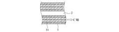 上記焼結粉を磁場中でプレス成形する。プレス成形中の磁場は、回転磁場又は同一面内で方向が変わる交番磁場が好ましい。また一定方向の磁場中で成形空間を回転させても良い。配向度を上げるために、焼結粉の水性スラリーを用いる湿式プレス成形が好ましい。スラリーにメチルセルロース等のバインダーを添加しても良い。磁場中プレス成形法により、図5に示す面内配向した六方晶フェライト焼結体を得ることができる。成形体は電気炉等で焼結し、必要に応じて機械加工を施す。磁性基体1の幅及び高さ(円柱形の場合直径)に対する長さの比が大きい場合、プレス成形法で一体的に形成するのは困難であるので、複数のフェライト焼結体を接合しても良い。(1) Press molding method The above sintered powder is press molded in a magnetic field. The magnetic field during press molding is preferably a rotating magnetic field or an alternating magnetic field whose direction changes in the same plane. Further, the molding space may be rotated in a magnetic field in a certain direction. In order to increase the degree of orientation, wet press molding using an aqueous slurry of sintered powder is preferred. A binder such as methylcellulose may be added to the slurry. The in-plane oriented hexagonal ferrite sintered body shown in FIG. 5 can be obtained by press forming in a magnetic field. The formed body is sintered in an electric furnace or the like and machined as necessary. When the ratio of the length to the width and height (diameter in the case of a cylindrical shape) of the