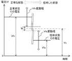 有機EL素子が短絡した場合、有機EL素子のアノード/カソード間のインピーダンスに応じた電圧Vfが、アノード/カソード間にかかる。この電圧Vfは正常な状態の有機EL素子のアノード/カソード間の電圧よりも低い。 When the organic EL element is short-circuited, a voltage Vf corresponding to the impedance between the anode and cathode of the organic EL element is applied between the anode and cathode. This voltage Vf is lower than the voltage between the anode and the cathode of the organic EL element in a normal state.