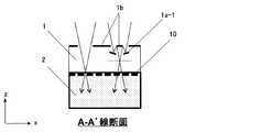 ある態様において、前記光束分割領域の上面に垂直な方向から見たとき、前記第1から第4の部分領域は、2行2列に配列されている。 In one embodiment, the first to fourth partial regions are arranged in 2 rows and 2 columns when viewed from a direction perpendicular to the upper surface of the light beam splitting region.