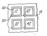 본 발명의 양호한 실시예에서, 표면(16)은 변형 가능한 미러 셀의 어레이를 포함한다. 어레이(16)에 사용하기에 적합한 변형가능한 미러 셀은 제1b도, 제1c도, 및 제1d도에 도시되어 있다. 4개의 셀(17, 27, 37, 및 47)은 제1b도에 도시되어 있다. 셀(17)의 미러(32)는 제1b도에 도시한 위치 주위에 힌지(30)에 의해 변조기(15)에 접속된다. 셀(17)이 작동될 때, 미러(32)는 제1c도에 도시한 위치로부터 제1d도에 도시한 위치까지 아래로 당겨진다. 셀(17)이 하향 위치에 있을 때, 이것은 광 경로(6)을 따라 광을 향하게 한다. 미러가 제1c도의 하향 위치에 있을 때, 광 경로(7)로부터의 비임의 일부는 광 경로(6) 및 디스플레이(2)으로부터 떨어져 지향된다. 힌지되지 않는 어레이(16)의 다른 부분, 예를 들어, 표면 부분(34)는 또한 광을 디스플레이(2)로 지향시키지 않는다.In a preferred embodiment of the present invention,