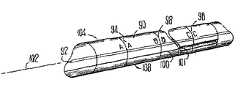 스톡으로부터의 페루울 세그먼트(111)를 분리하기 전에 관형 스톡(90)을 따라 길이 방향으로 형성된 홈(101)(제9도에 도시)은 인접한 페루울 사이의 각도 관계를 확인하는데 사용될 수 있다. 상기 홈은 시각적인 관찰없이 페루울의 회전 정렬을 용이하게 한다. 예를들면, 미합중국 특허 제 4,545,644호의 정렬 로드를 사용할 때, 제1페루울 세그먼트(111)는, 하나의 로드가 페루울의 홈을 따라 제1페루울과 접촉하도록, 정렬 로드 사이에 삽입된다. 제2페루울 세그먼트(111)가 삽입된 후에, 동일 정렬 로드가 홈을 따라 제2페루울과 접촉할 때까지 회전된다. 상기 후자의 정렬은 로드가 홈에 들어갈 때 발생하는 클릭에 의해 신호될 수 있다.The grooves 101 (shown in FIG. 9) formed longitudinally along the tubular stock 90 can be used to confirm the angular relationship between adjacent Peru Wool prior to separating the Peru Wool segment 111 from the stock. The groove facilitates rotational alignment of the Peruvian wool without visual observation. For example, when using the alignment rod of US Pat. No. 4,545,644, the first ferrule segment 111 is inserted between the alignment rods so that one rod contacts the first ferrule along the groove of the peru wool. After the second ferrule segment 111 is inserted, the same alignment rod is rotated along the groove until it contacts the second ferrule. The latter alignment can be signaled by a click that occurs when the rod enters the groove.