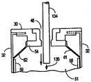 도 5는 손잡이(28)의 일부를 형성하는 원통형상 슬리브(26)로 둘러싸여 있는 프린트 카트리지 밸브(24)의 확대도이다.  지지 플랜지(52)가 손잡이(28)에 대하여 추가 지지를 제공한다.5 is an enlarged view of the