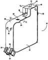 금속 측판(58, 59)의 표면에는, 측판(58, 59)의 금속 가장자리가 잉크주머니 측벽(61, 62)에 접촉하여 그것을 인열시키지 못하도록 가장자리 보호부(edge guard)가 선택적으로 접합될 수도 있다.  이 가장자리 보호부는 측판(58, 59)의 외면에 접착제로 고정되고 가장자리와 약간 중첩된 얇은 플라스틱 덮개층일 수도 있다.On the surface of the