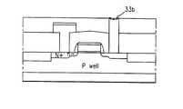 또한, 고,강유전막을 결정시키거나 평탄화를 위한 글래스 리플로우(Glass Reflow)등에서 요구되는 750℃ 이상의 온도로 열처리를 하면 계면의 SiOx막(33b)은 파괴되어 다결정 실리콘등으로 이루어진 플러그층(32)과 금속간에 도통을 보장해준다.In addition, when the high ferroelectric film is crystallized or heat-treated at a temperature of 750 ° C. or higher required for glass reflow for planarization, the
