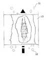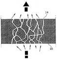 도5도는  본  발명의  방진  원단의  코팅층에  있어서  몸에서  발산되는  증기  또는  물  입자가  코팅층을  통과하여  배출되는  원리를  보여주기  위한  모식도로서,  도2의  종래기술에서  물  입자가  미세  가공을  통하여  배출되는  것과는  달리  증기입자(12)가  코팅층(13)에  일단  흡수되어  바깥쪽으로  확산  전이되면서  증기분자(11)  상태로  외부로  배출된다.  따라서  기공의  막힘에  의한  오염원  배출  차단도  없앨  수  있고,  오염  입자가  보다  미세하게  되어  배출되게  한다.Figure 5 is a schematic diagram for showing the principle that the vapor or water particles emitted from the body is discharged through the coating layer in the coating layer of the dust-proof fabric of the present invention, the water particles in the prior art of Figure 2 is discharged through fine processing Unlike, the