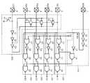 이 실시예에 있어서, 상기 각 전달 게이트는 하나의 PMOS 트랜지스터와 하나의 NMOS 트랜지스터로 구성되며, 상기 제 1 제어 단자들은 상기 각 전달 게이트의 NMOS 트랜지스터들의 게이트들이고 그리고 상기 제 2 제어 단자들은 상기 각 전달 게이트의 PMOS 트랜지스터들의 게이트들인 것을 특징으로 한다.In this embodiment, each transfer gate consists of one PMOS transistor and one NMOS transistor, wherein the first control terminals are the gates of the NMOS transistors of the respective transfer gates and the second control terminals are the respective transfer gates. Gates of the PMOS transistors of the gate.