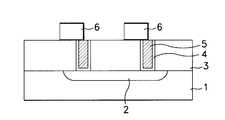 이 기술은, 도 1에 도시된 바와 같이, 도전 영역(2)을 구비한 반도체 기판(1) 상부에 평탄화 산화막(3)을 소정 두께로 증착한다. 이어서, 도전 영역(2)의 소정 부분이 노출되도록, 예를들어, 2개의 콘택홀을 형성한다. 그후, 콘택홀의 내벽부에는 전자 이동 또는 스트레스가 소자내로 인가되는 것을 감소하도록, Ti/TiN막과 같은 장벽 금속막(4)을 피복한다. 콘택홀내에, 화학 기상 증착 방식에 의하여, 텅스텐 플러그(5)를 형성한다. 이때, 텅스텐 금속은 매립 특성이 우수하여, 콘택홀내에 용이하게 매립되어, 결과물 표면은 평탄하여 진다. 그리고나서, 텅스텐 플러그(5) 및 산화막(3) 상부에 금속 배선용 금속막을 증착하고, 소정 부분 패터닝하여, 금속 배선막(6)을 형성한다.In this technique, as shown in FIG. 1, the planarization oxide film 3 is deposited to a predetermined thickness on the