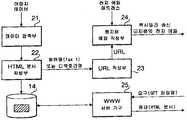 도3에, CPU(11)의 기능 블럭의 구성이 도시되어 있다. 데이티 압축부(21)는 스캐너부(16)가 판독한 송신 원고의 이미지 데이터 또는 공중 회선망으로부터 수신한 팩시밀리 데이터에 포함된 이미지 데이터를 JPEG, TIFF 등의 방식으로 데이터 압축한다. HTML 문서 작성부(22)는 데이터 압축된 이미지 데이터를 HTML 문서로 변환하여 화일명을 붙이고 외부 스토리지(14)에 보존한다. 외부 스토리지(14)에 보존한 이미지 데이터의 화일명 및 디렉토리는 URL 작성부(23)로 전달된다. URL 작성부(23)는 NETFAX(1) 내의 외부 스토리지(14)에 보존한 이미지 데이터로 액세스하기 위한 프로토콜, 이미지 데이터로서 송신해야 할 이미지 데이터가 존재하는 인터넷상의 서버명(NETFAX(1)), 이미지 데이터를 저장하고 있는 외부 스토리지(14)내에서의 디렉토리와 화일명의 요소로 이루어지는 URL을 작성한다. 전자 메일 작성부(24)는 패널부(15)로부터 입력되는 송신선 전자 메일 어드레스, 또는 팩시밀리 데이터를 보내 온 ISDN 회선의 서브어드레스로 지시된 송신선 전자 메일 어드레스를 수신한다. 그리고, 상기 URL을 팩시밀리 송신을 통지하기 위해 송신선 전자 메일 어드레스에 송신한다. 한편, NETFAX(1)내에 구비한 WWW 서버 기구(25)는 수신측 단말기(3)로부터 URL을 사용하여 외부 스토리지의 이미지 데이터로 액세스해온 것을 인식한다. WWW 서버 기구(25)는 수신측 단말기(3)로부터 수신한 액세스 요구에 대하여 외부 스토리지(14)로부터 이미지 데이터를 취득하여 수신측 단말기(3)로 HTTP에 따라 직접 전송한다.3, the configuration of the functional blocks of the