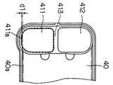 방열관(39)은 두개의 대체로 사각형인 프레스 가공 판재(40)의 외주 단부를 접합하여 형성된 중공 구조이다(도4A 참조).  두개의 프레스 가공 판재(40)는 알루미늄과 같은 고열전도성을 갖는 금속 판재를 프레스 가공하여 동일한 형상으로 형성되며, 각각의 프레스 가공 판재(40)의 마주보는 각각의 단부에는 작은 직경을 갖는 소구경 개구부(41)(소구경부, 제한 개구부)이 제공된다.  도4B에 도시된 바와 같이, 소구경 개구부(41)는 대체로 타원 또는 사각형으로 펀칭 가공된 구멍이다.  본 실시예에서, 소구경 개구부(41)는 직경 r2를 가지며, 직경 r2보다 큰 직경 r1을 갖는 대구경 개구부(대구경부)가 각각의 작은 개구부(41)의 주위에 형성된다.The