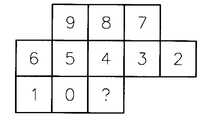한편, JBIG 표준안에 따른 3-라인 템플레트의 구조는 도 8에 도시되어 있으며, 현재 처리되고 있는 화소는 ?이며, 이 화소의 부호화를 위해 주변의 0에서 9까지 10개의 화소값에 따라 확률을 적응적으로 적용하여 콘텍스트를 만들게 된다. 이러한 3-라인 템플레트용 콘텍스트 발생 회로의 일 실시예에 따른 회로도는 도 9에 도시되어 있다.On the other hand, the structure of the three-line template according to the JBIG standard is shown in Fig. 8, and the pixel currently being processed is?, And the probability is determined according to the values of 10 pixels from 0 to 9 in order to encode the pixel. You apply it adaptively to create a context. A circuit diagram according to one embodiment of such a three-line template context generating circuit is shown in FIG. 9.