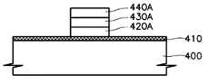 제4 실시예에서는 본 발명에 의한 금속 산화막, 즉 알루미늄 산화막이 MFMIS(metal ferroelectric metal insulator silicon) 트랜지스터 또는 MFIS(metal ferroelectric insulator silicon) 트랜지스터의 절연막으로 사용된다. 도 3을 참고하면, 반도체 기판(400)상에 절연막(410)이 형성되어 있고 절연막위에 제1 금속막 패턴-고유전체막 패턴-제2 금속막 패턴(420A-430A-440A)으로 이루어진 전극이 형성되어 있다. 절연막(410)은 알루미늄 산화막으로 이루어지는 것이 바람직하다. 알루미늄 산화막의 두께는 10Å 내지 250Å인 것이 바람직하며, 더욱 바람직하기로는 10Å 내지 100Å 두께를 지닌다. 알루미늄 산화막은 250∼450℃에서, 더욱 바람직하기로는 350℃에서 증착된 것이 사용된다. 특히 ALD(atomic layer deposition)방식으로 증착되어 균일도와 단차 피복력이 향상된 알루미늄 산화막을 사용한다. 그리고 증착후 산소 분위기하에서 250∼600℃로, 바람직하기로는 400℃∼500℃로 열처리되어 안정화된 막질을 지닌 알루미늄 산화막을 이용한다.In the fourth embodiment, a metal oxide film according to the present invention, that is, an aluminum oxide film, is used as an insulating film of a metal ferroelectric metal insulator silicon (MFMIS) transistor or a metal ferroelectric insulator silicon (MFIS) transistor. Referring to FIG. 3, an insulating