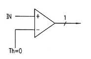 도 7은 상기 세그먼트 슬라이서(43)의 실시예로서, 비교기를 이용할 수 있으며, 임계값은 '0'으로 설정하였다. 그러므로, 상기 세그먼트 적분부(42)의 출력이 0보다 크면 세그먼트 슬라이서(43)는 '1'을 출력하여 수평 동기 구간임을 알리고, 0보다 작으면 '0'을 출력하여 데이터 구간임을 알린다. 이로 인해, 데이터 구간은 무시할 수 있게된다.FIG. 7 shows an example of the