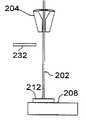 도2c는 기판(208)의 표면으로부터 연장하는 스템부(230)와 이송부(231)를 구비하도록 전극(232)으로부터의 아크에 의해 절단되는 와이어 스템을 도시한다. 이 경우에, 아크의 강도는 현저한 크기(도2b의 도면 부호 234 및 236과 비교)의 볼의 형성을 야기시킴이 없이 와이어를 절단하기에 충분하도록 제어(최소화)된다. 도2b에 도시된 볼(234, 236)에 상응하는 볼은 볼을 형성하기 위한 적절한 기술을 사용하는 연속 공정 단계에서 형성될 수 있다. 와이어의 스템부(예를 들어, 도면 부호 230)의 선단 상에 볼을 형성시킴이 없이 볼이 공급부(예를 들어, 도면 부호 231) 와이어의 선단 상에 형성되는 것은 본 발명의 요지 내에 있다.FIG. 2C shows a wire stem cut by an arc from